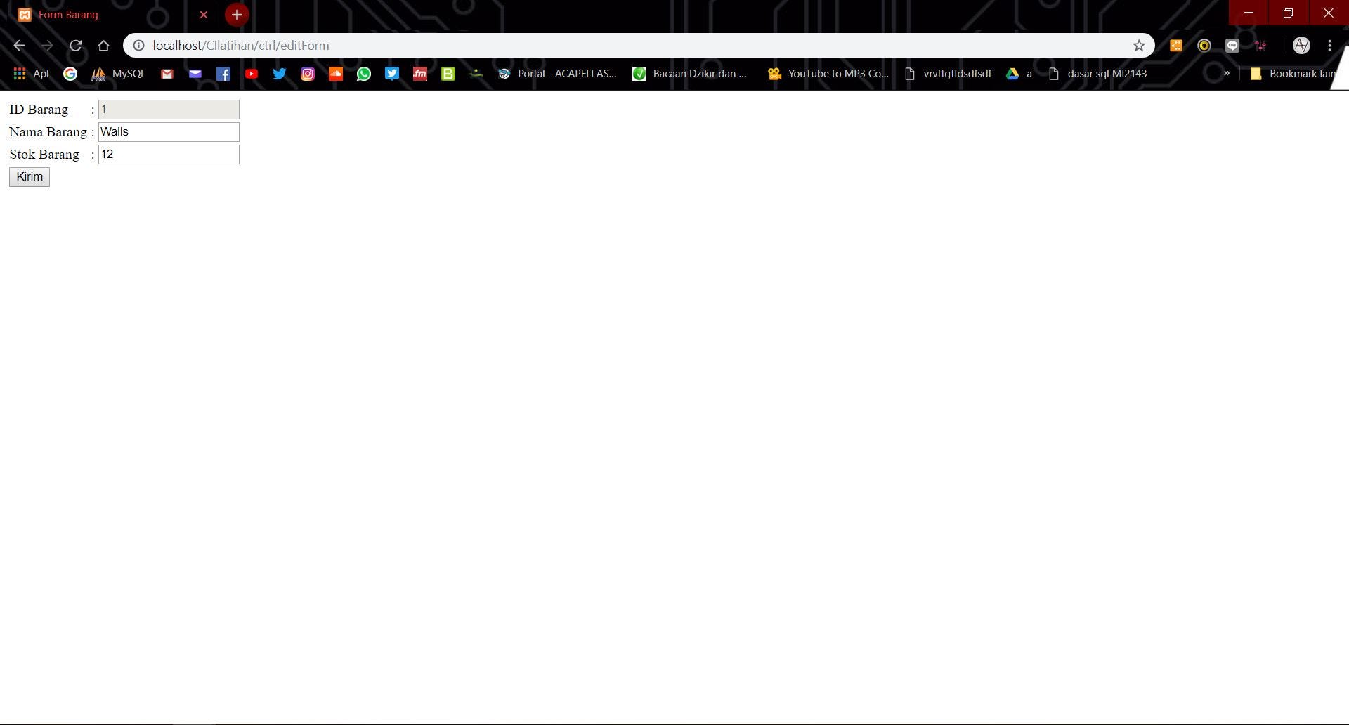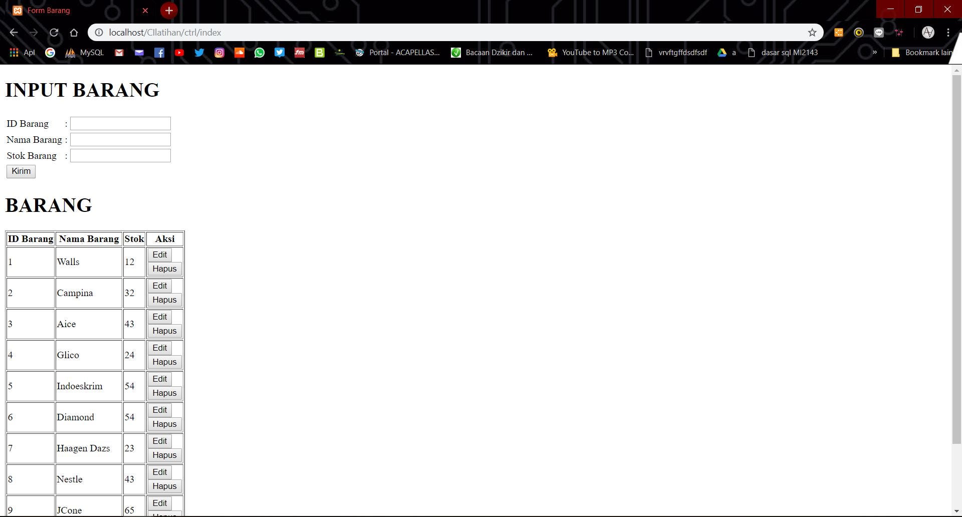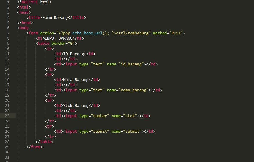 3. Buat View untuk menampilkan FORM INPUT BARANG dan TABEL BARANG seperti dibawah ini :